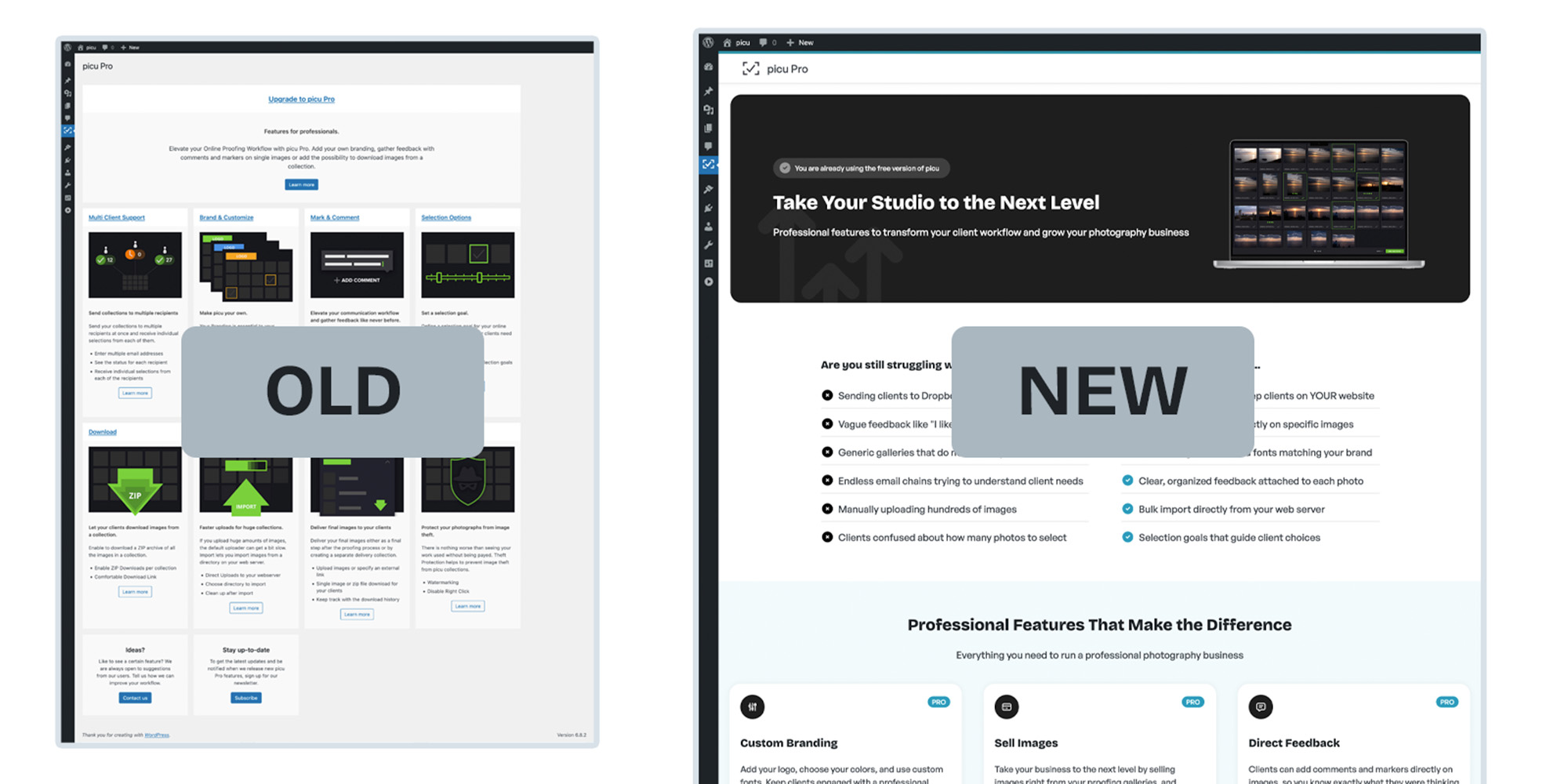 We updated the pro upsell page inside our free picu plugin to better reflect what picu Pro has to offer.