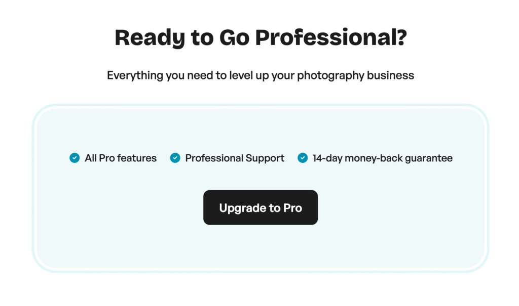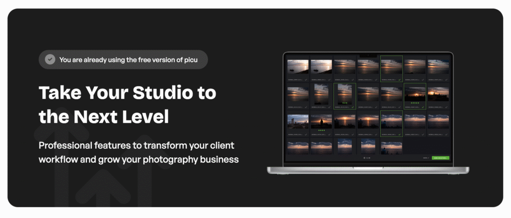 On the frontend, the interface photographers’ clients see when ordering images through picu, we prioritize simplicity and ease of use and we continue to do so when selling images.