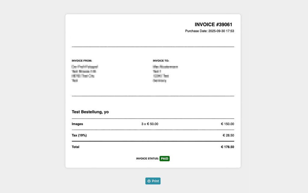 With the upcoming release that we’re working on right now, we’re adding professional invoices for your clients, that they can download and/or print on their own for each of their orders.